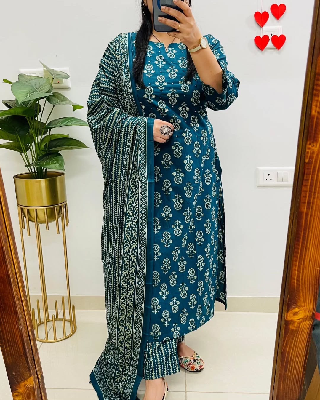 Premium Cotton Mirror worked Salwar Suit- Rama